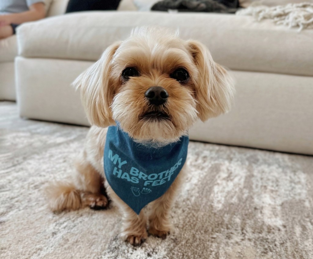 - Plan for sleeping arrangements: I am used to sleeping in my own donut bed by my humans. We’re remaining flexible to see if I want to stay in the same room or will want to sleep elsewhere once baby joins us, so I have a familiar bed or crate in 3 other places in the house. Sometimes I like having my own space! Also, in case I have trouble sleeping, we have some calming treats (PetFinn.com Calming Aid – save w/ code BUTTERSPUP20) as well as vet-prescribed sleepy meds on hand (Trazodone).